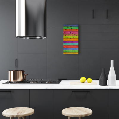 Un reloj rectangular sobre vidrio de 30x60 cm con el motivo Arte cinturón madera colorido es una decoración de pared efectiva que funciona bien en habitaciones de diferentes estilos. Este elemento intemporal del diseño de interiores, además de indicar la hora actual, también puede complementar su habitación. El reloj rectangular sobre vidrio Arte cinturón madera colorido funcionará como una decoración moderna y se mantendrá en un estilo un poco más clásico. El reloj de cristal Arte cinturón madera colorido se puede utilizar con éxito en las habitaciones de la casa, por ejemplo, en salas de estar, dormitorios, pasillos, cocinas, así como en oficinas o locales comerciales.