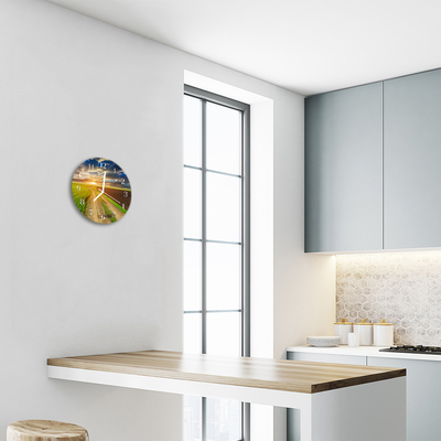 Un reloj redondo sobre vidrio de fi 30 cm con el motivo Campo es una decoración de pared única que le dará un carácter único a varias habitaciones. La mano de obra cuidadosa y la reproducción fiel de los colores los convierten en la pieza central de cualquier pared. Un reloj de vidrio redondo con el motivo Campo es un elemento intemporal del diseño de interiores, que gracias a la mano de obra moderna y el diseño único es una adición extraordinaria.