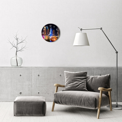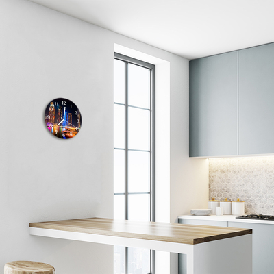 Un reloj redondo sobre vidrio de fi 30 cm con el motivo Ciudad edificios es una decoración de pared única que le dará un carácter único a varias habitaciones. La mano de obra cuidadosa y la reproducción fiel de los colores los convierten en la pieza central de cualquier pared. Un reloj de vidrio redondo con el motivo Ciudad edificios es un elemento intemporal del diseño de interiores, que gracias a la mano de obra moderna y el diseño único es una adición extraordinaria.