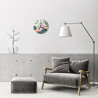 Un reloj redondo sobre vidrio de fi 30 cm con el motivo Flores es una decoración de pared única que le dará un carácter único a varias habitaciones. La mano de obra cuidadosa y la reproducción fiel de los colores los convierten en la pieza central de cualquier pared. Un reloj de vidrio redondo con el motivo Flores es un elemento intemporal del diseño de interiores, que gracias a la mano de obra moderna y el diseño único es una adición extraordinaria.