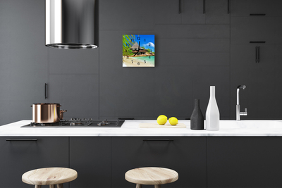 Un reloj cuadrado sobre vidrio de 30x30 cm con el motivo Isla es una decoración extremadamente efectiva que puede cambiar el carácter de cualquier interior. Esta decoración aparentemente clásica se caracteriza por un diseño moderno y un estampado original.