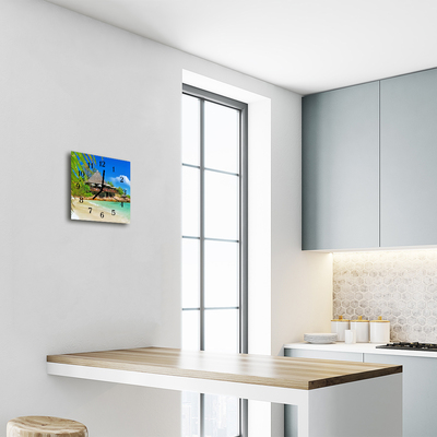 Un reloj de vidrio cuadrado de 30x30 cm con el motivo Isla puede formar parte del mobiliario del hogar, incluyendo salas de estar, dormitorios, cocinas, pasillos, así como espacios públicos y oficinas. El reloj cuadrado sobre vidrio Isla está hecho de materiales duraderos, gracias a los cuales se convertirá en un adorno duradero que lo deleitará con su impresión original.