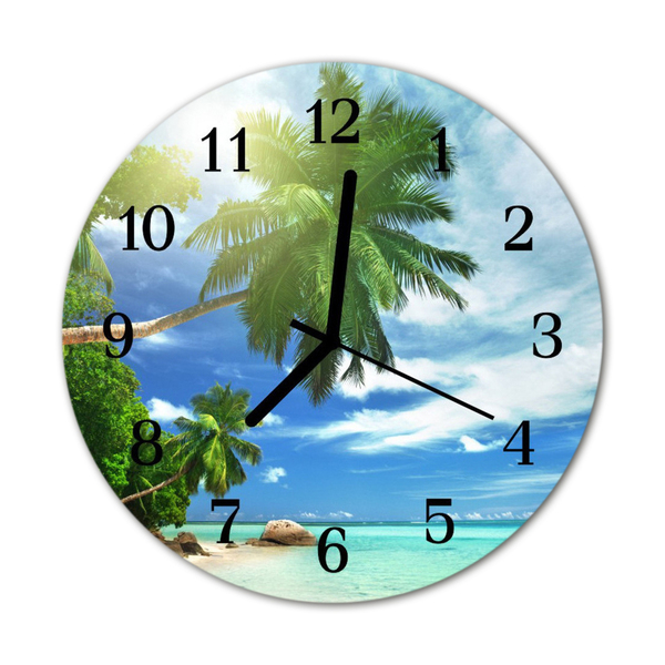 Un reloj redondo sobre vidrio de fi 30 cm con el motivo Isla palmeras es una decoración de pared única que le dará un carácter único a varias habitaciones. La mano de obra cuidadosa y la reproducción fiel de los colores los convierten en la pieza central de cualquier pared. Un reloj de vidrio redondo con el motivo Isla palmeras es un elemento intemporal del diseño de interiores, que gracias a la mano de obra moderna y el diseño único es una adición extraordinaria.