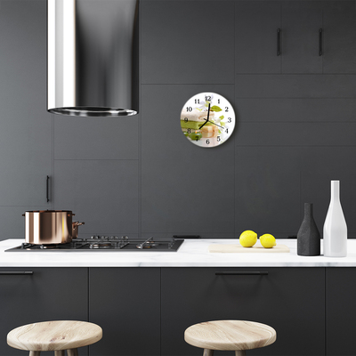 Un reloj redondo sobre vidrio de fi 30 cm con el motivo Jabón para el spa es una decoración de pared única que le dará un carácter único a varias habitaciones. La mano de obra cuidadosa y la reproducción fiel de los colores los convierten en la pieza central de cualquier pared. Un reloj de vidrio redondo con el motivo Jabón para el spa es un elemento intemporal del diseño de interiores, que gracias a la mano de obra moderna y el diseño único es una adición extraordinaria.