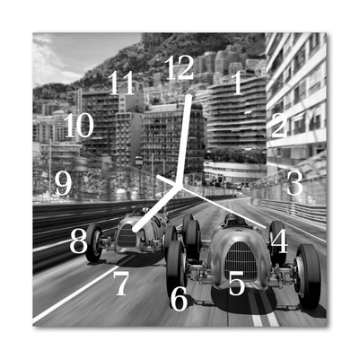 Un reloj cuadrado sobre vidrio de 30x30 cm con el motivo Juego en 3d de carreras de coches es una decoración extremadamente efectiva que puede cambiar el carácter de cualquier interior. Esta decoración aparentemente clásica se caracteriza por un diseño moderno y un estampado original.