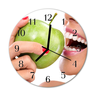 Un reloj redondo sobre vidrio de fi 30 cm con el motivo Manzana es una decoración de pared única que le dará un carácter único a varias habitaciones. La mano de obra cuidadosa y la reproducción fiel de los colores los convierten en la pieza central de cualquier pared. Un reloj de vidrio redondo con el motivo Manzana es un elemento intemporal del diseño de interiores, que gracias a la mano de obra moderna y el diseño único es una adición extraordinaria.