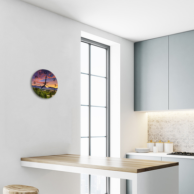 Un reloj redondo sobre vidrio de fi 30 cm con el motivo Paisaje es una decoración de pared única que le dará un carácter único a varias habitaciones. La mano de obra cuidadosa y la reproducción fiel de los colores los convierten en la pieza central de cualquier pared. Un reloj de vidrio redondo con el motivo Paisaje es un elemento intemporal del diseño de interiores, que gracias a la mano de obra moderna y el diseño único es una adición extraordinaria.