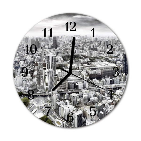 Un reloj redondo sobre vidrio de fi 30 cm con el motivo Ciudad es una decoración de pared única que le dará un carácter único a varias habitaciones. La mano de obra cuidadosa y la reproducción fiel de los colores los convierten en la pieza central de cualquier pared. Un reloj de vidrio redondo con el motivo Ciudad es un elemento intemporal del diseño de interiores, que gracias a la mano de obra moderna y el diseño único es una adición extraordinaria.
