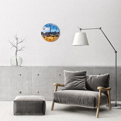 Un reloj redondo sobre vidrio de fi 30 cm con el motivo Monte es una decoración de pared única que le dará un carácter único a varias habitaciones. La mano de obra cuidadosa y la reproducción fiel de los colores los convierten en la pieza central de cualquier pared. Un reloj de vidrio redondo con el motivo Monte es un elemento intemporal del diseño de interiores, que gracias a la mano de obra moderna y el diseño único es una adición extraordinaria.