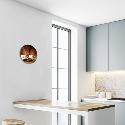 Un reloj redondo sobre vidrio de fi 30 cm con el motivo Vasos para el café es una decoración de pared única que le dará un carácter único a varias habitaciones. La mano de obra cuidadosa y la reproducción fiel de los colores los convierten en la pieza central de cualquier pared. Un reloj de vidrio redondo con el motivo Vasos para el café es un elemento intemporal del diseño de interiores, que gracias a la mano de obra moderna y el diseño único es una adición extraordinaria.