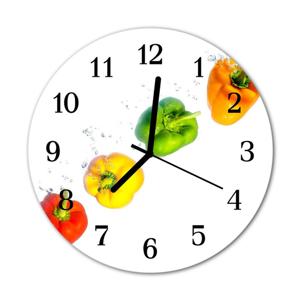 Un reloj redondo sobre vidrio de fi 30 cm con el motivo Pimiento es una decoración de pared única que le dará un carácter único a varias habitaciones. La mano de obra cuidadosa y la reproducción fiel de los colores los convierten en la pieza central de cualquier pared. Un reloj de vidrio redondo con el motivo Pimiento es un elemento intemporal del diseño de interiores, que gracias a la mano de obra moderna y el diseño único es una adición extraordinaria.