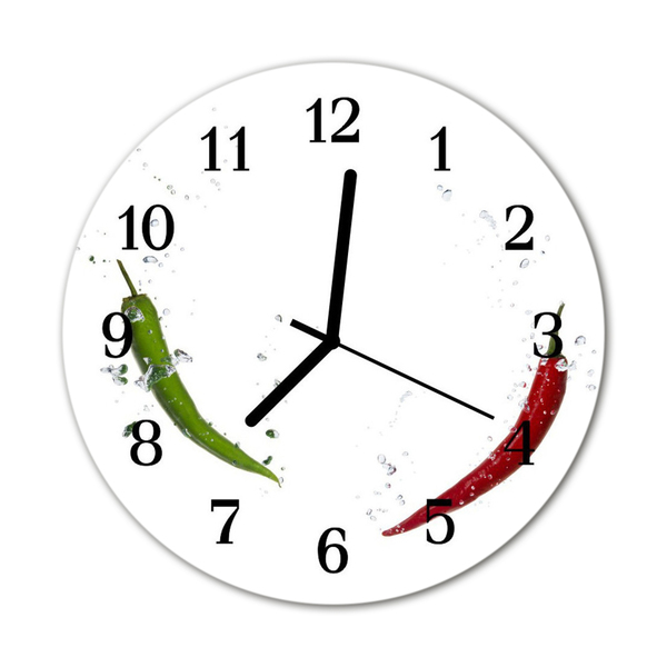 Un reloj redondo sobre vidrio de fi 30 cm con el motivo Pimiento es una decoración de pared única que le dará un carácter único a varias habitaciones. La mano de obra cuidadosa y la reproducción fiel de los colores los convierten en la pieza central de cualquier pared. Un reloj de vidrio redondo con el motivo Pimiento es un elemento intemporal del diseño de interiores, que gracias a la mano de obra moderna y el diseño único es una adición extraordinaria.