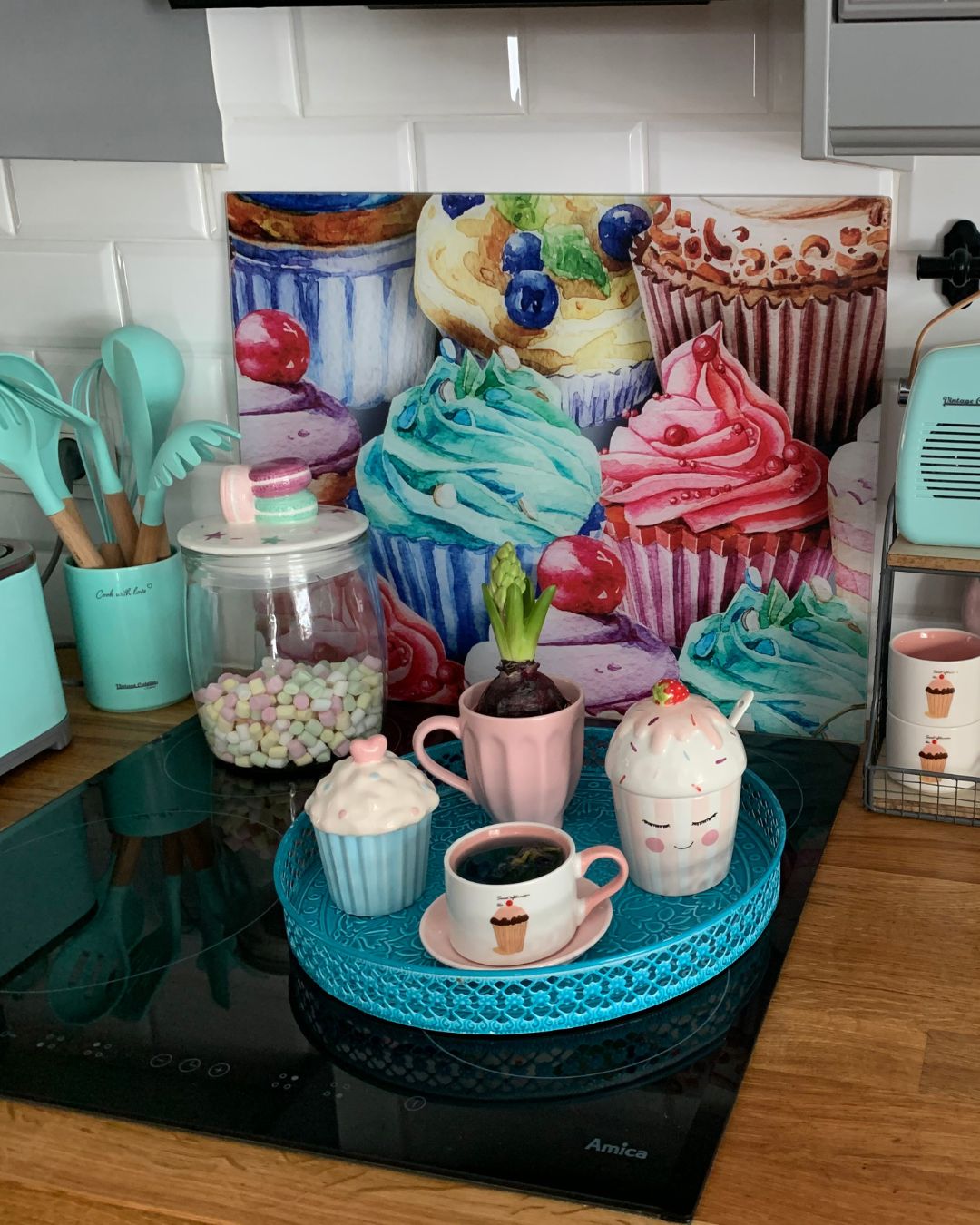 Una tabla de cortar de vidrio con el motivo Cupcakes y pasteles coloridos es una forma efectiva de decorar su cocina. La placa de vidrio Cupcakes y pasteles coloridos en tamaño 60x52cm está hecha de vidrio templado, lo que la hace extremadamente duradera. La tabla de cortar de vidrio con el motivo Cupcakes y pasteles coloridos es un elemento decorativo. La comida que se sirve en una tabla de cortar de vidrio Cupcakes y pasteles coloridos parece original, y la tabla es una atracción adicional sobre la mesa.